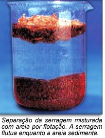 * Assim, facilmente, separa-se a mistura areia-serragem, introduzindo-a em um frasco contendo água.