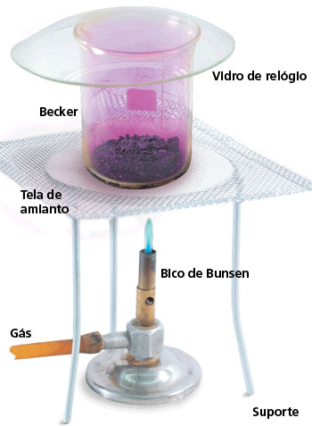* A substância começa a sublimar e a passar para a fase gasosa separando-se das impurezas que ficam retidas no fundo do béquer.