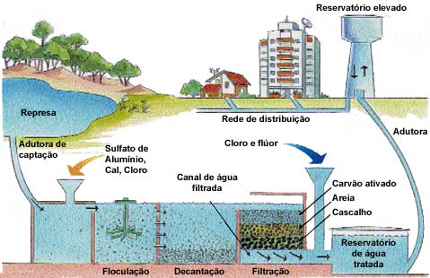 * O tratamento da água de uma cidade é feito em várias etapas.