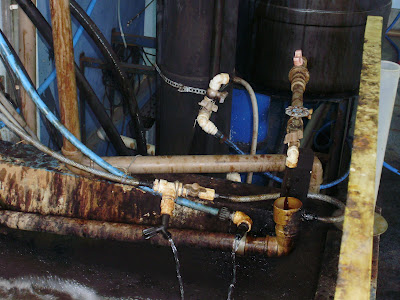 * Assim que chega à estação, a água bruta recebe uma série de compostos químicos: no geral, cloro, cal e sulfato de alumínio.